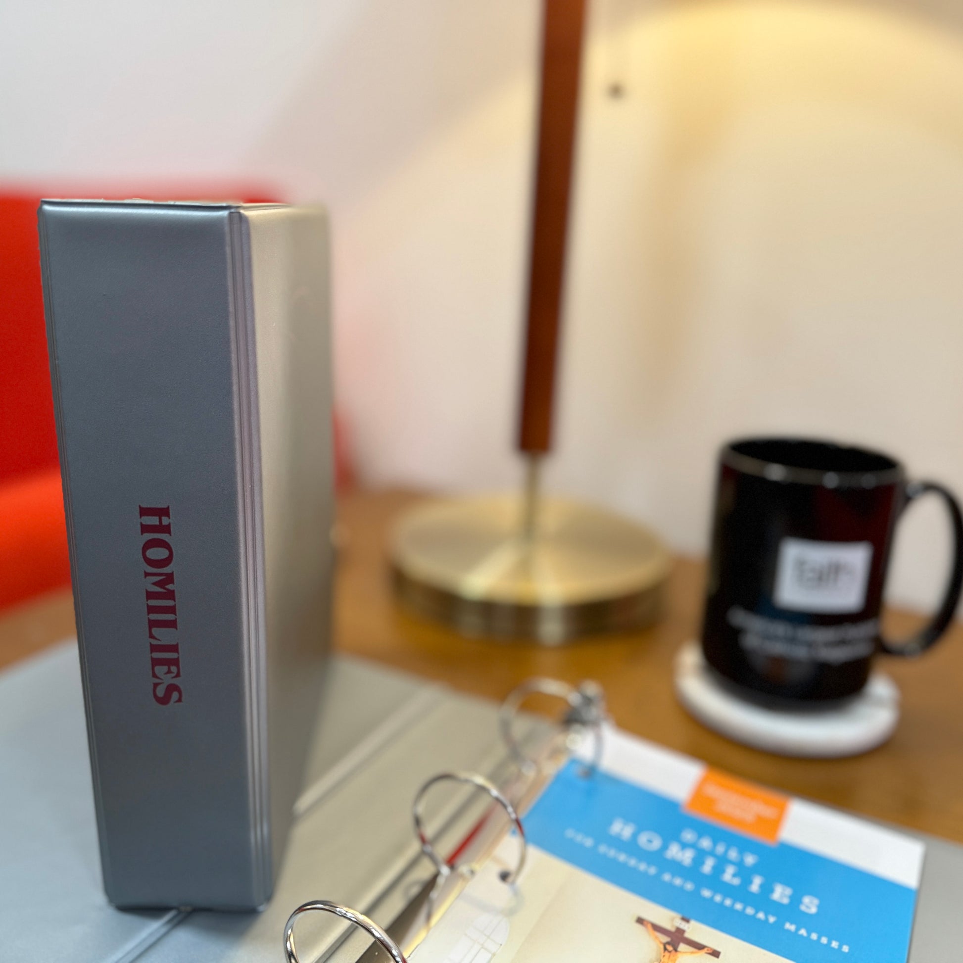 Three-ring 1.5"  binder designed to hold six monthly booklets of the Daily Homilies.