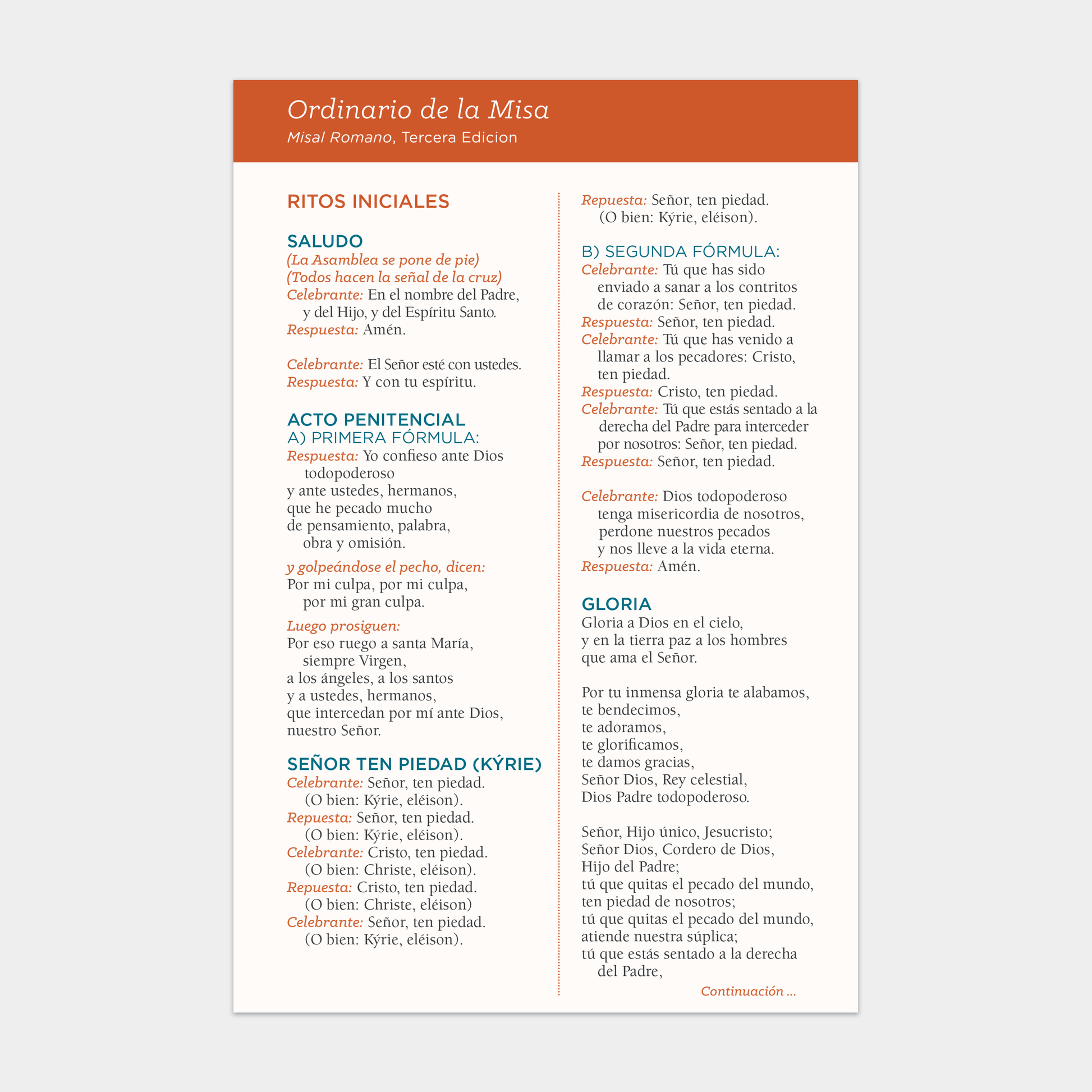 Ordinario de la Misa -- Pew Card