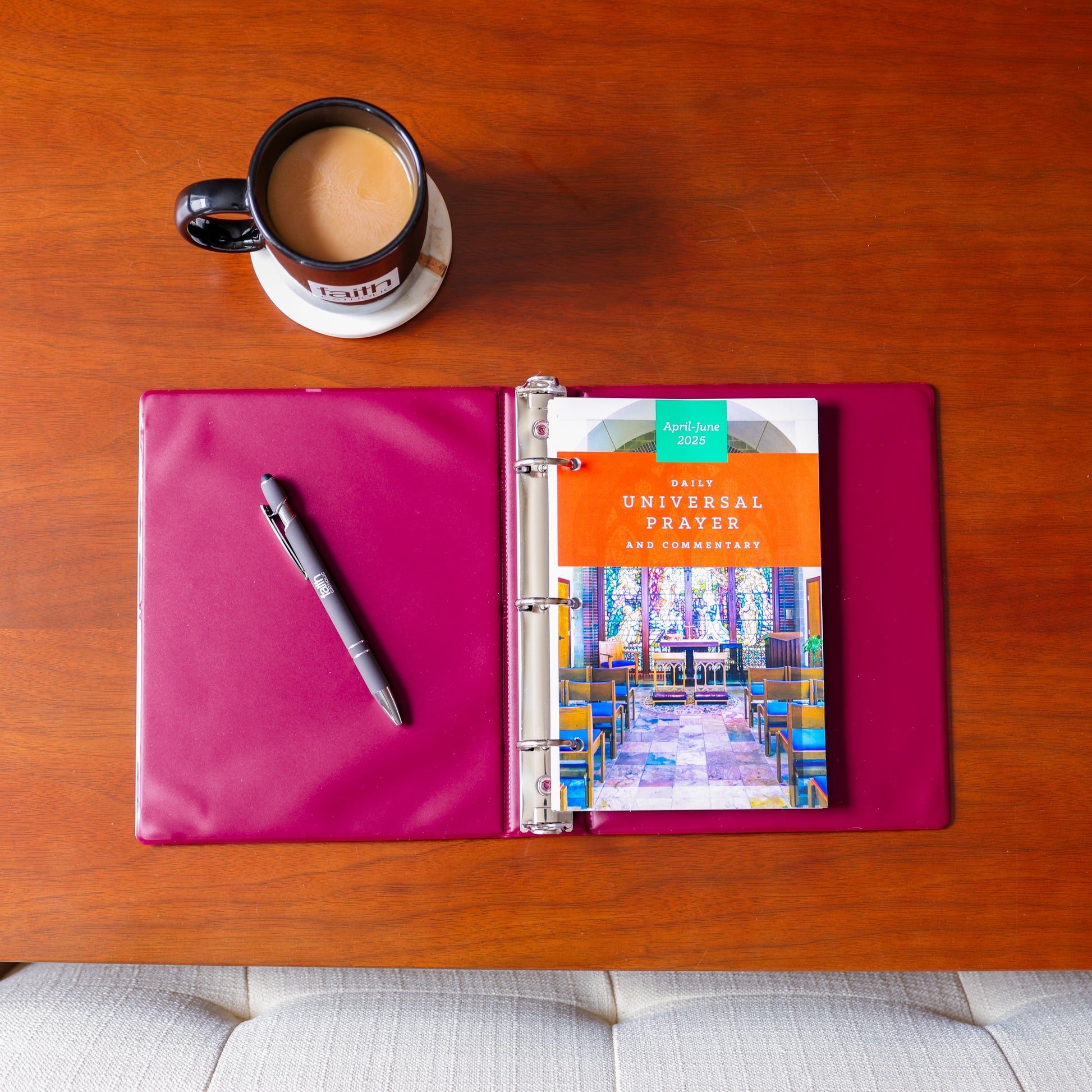 Three-ring 1" binder designed to hold two quarterly issues of Universal Prayer and Commentary.
