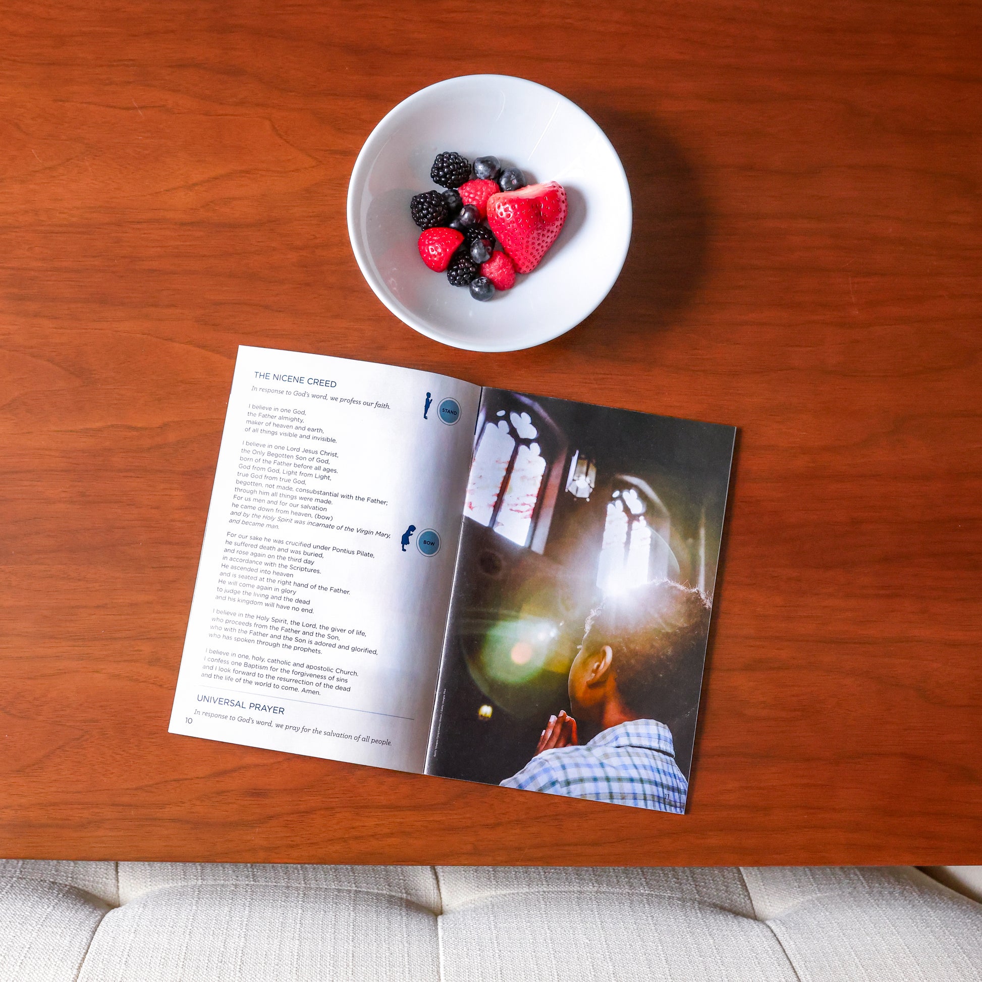 Time for Mass! A Visual Guide for Catholic Families is a single booklet guide to the Mass depicted in photographs, accompanied by prayers, responses and age-appropriate explanations for children. Perfect for parents of young children, religious education families and Catholic school families. The back section includes photos of what’s inside a Catholic church, as well as the vestments a priest may wear for different liturgical seasons. Families can use this booklet at home and also bring to Mass, allowing children to follow along with the liturgy while learning the names of the objects they see around them such as the ambo, the tabernacle and the baptismal font.